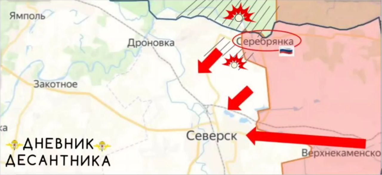 Идут бои на рубеже Новоселовка — Верхнекаменское. Практически подошли к Северску с востока, со стороны Верхнекаменского. Закрепляемся на позициях у прудов в восточных окраинах Северска.