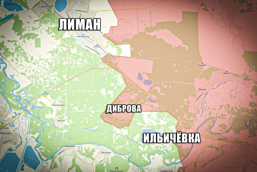 На Краснолиманском направлении вязкие, тяжёлые городские бои в Красном Лимане и позиционное сражение на линии Дробышево-Яровая-Святогорск. Ильичёвка уже находилась под российским контролем с мая по октябрь 2022 года. Теперь украинские боевики вновь выбиты за пределы населенного пункта. Село находится немногим южнее Красного Лимана и севернее села Кривая Лука. В сторону последнего планомерно продвигаются ВС РФ. Устойчивое закрепление там российских войск позволит накапливать малые штурмовые группы на подступах к Николаевке. Рядом расположился населенный пункт Диброва, который был освобожден от ВСУ немногим ранее, 10 апреля.