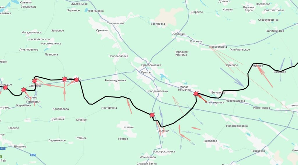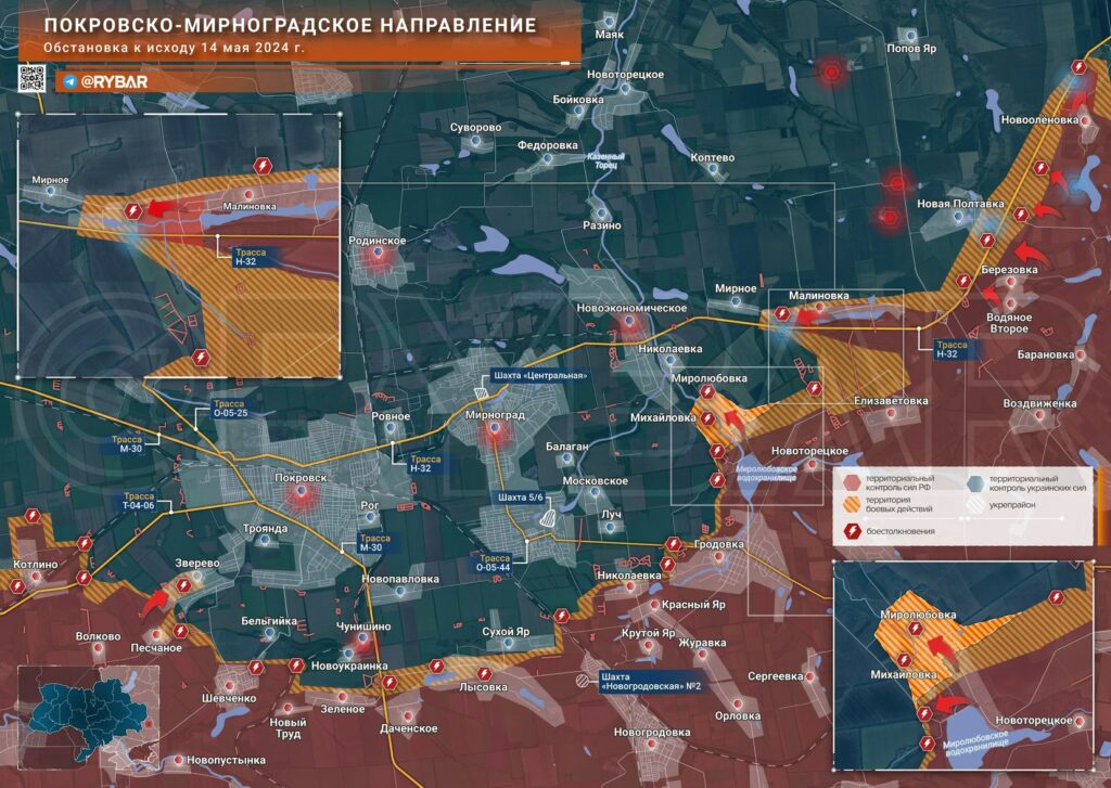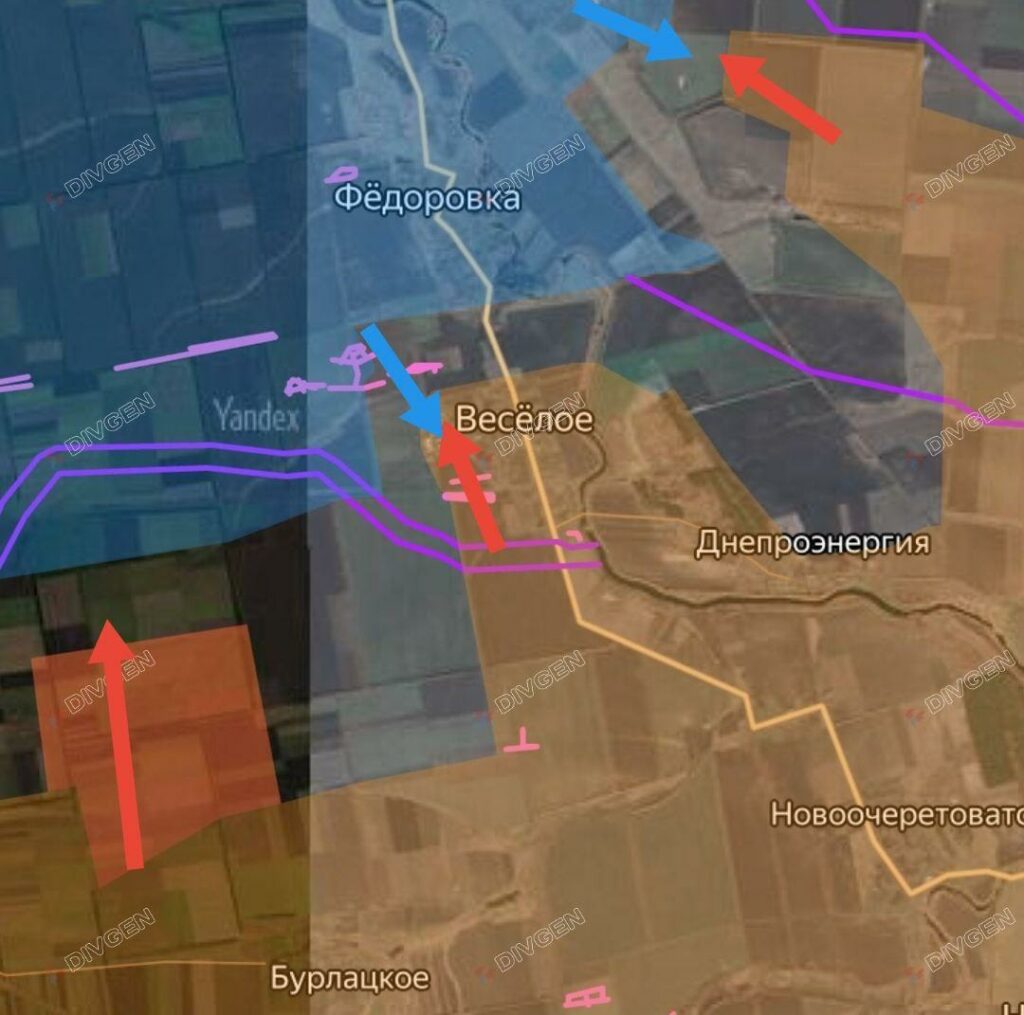 На Покровском фронте ВС РФ ведут тяжёлые бои за выход в Днепропетровскую обл. В Орехово сражение продолжается в центре села. ВС РФ зачищают посадки к югу от него, также сообщают, что почти зачищена территория между рубежами Надеждинка-Котляровка и Новоалександровка-Новониколаевка, наши выравнивают фронт. К востоку от Новоалександровки наши штурмовики продвинулись ещё примерно на 1 км. Бои идут в районе восточных окраин Новониколаевки. В Удачном и Котлино встречное сражение. На восточном фланге МО РФ сообщило об освобождении Михайловки, расположенной напротив Миролюбовки. До первых домов ключевого пригорода Мирнограда – Новоэкономического – остаётся 1,5 км. С востока к нему продвигаются наши части, которым после освобождения Малиновки осталось взять под контроль село Мирное. Его освобождение позволит начать обход Новоэкономического еще и с севера.