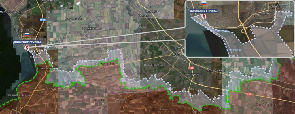 Подразделения группировки Днепр: На Ореховском направлении, в районе Новоданиловки и Малой Токмачки идут позиционные бои, линия боевого соприкосновения без существенных изменений. Подразделения ВС РФ продвинулись на южных окраинах Приморского и заняли новые позиции, в Степногорске идут позиционные бои. В небе фиксируется большое количество ударных и разведывательных БПЛА. Ночью ВС РФ нанесли комбинированный удар по территории Запорожья. В результате удара были поражены предприятия оборонного комплекса.