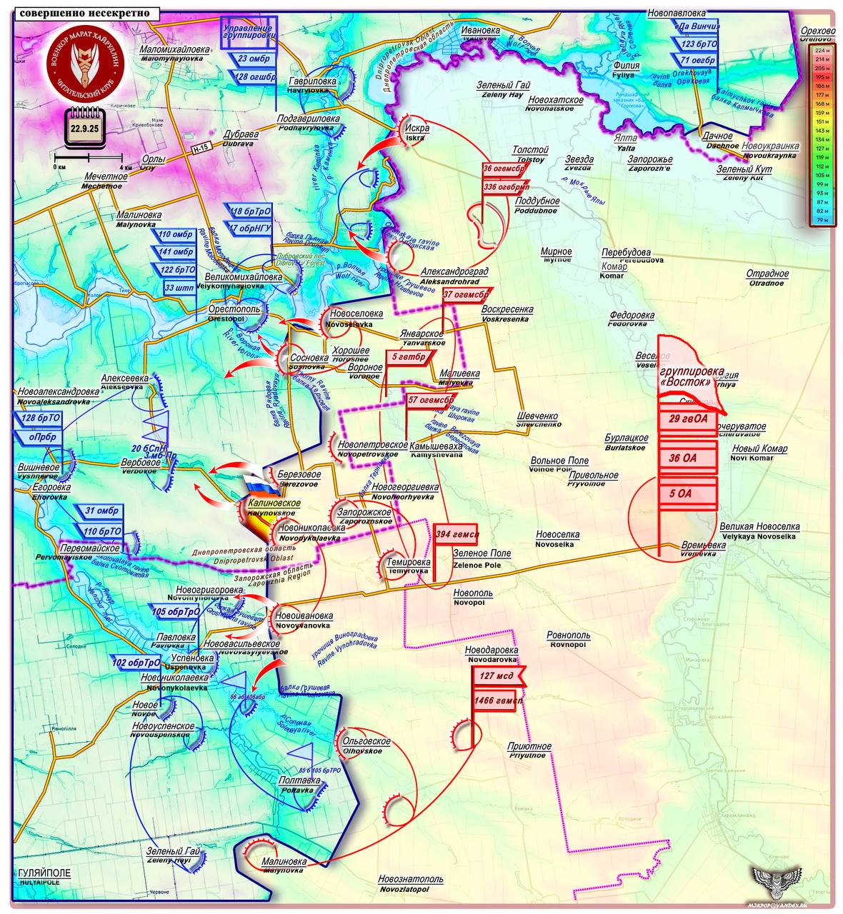 Подразделения группировки Днепр: На Ореховском направлении, в районе Новоданиловки и Малой Токмачки идут позиционные бои, линия боевого соприкосновения без существенных изменений. Подразделения ВС РФ продвинулись на южных окраинах Приморского и заняли новые позиции, в Степногорске идут позиционные бои. В небе фиксируется большое количество ударных и разведывательных БПЛА. Ночью ВС РФ нанесли комбинированный удар по территории Запорожья. В результате удара были поражены предприятия оборонного комплекса.