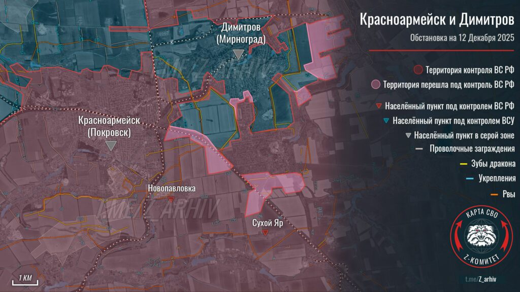 Российские войска продолжают активные действия на ряде направлений. По состоянию на 13 декабря фиксируется продвижение на Харьковском участке, а также напряжённые бои на Запорожском, Купянском, Северском и Сумском направлениях.