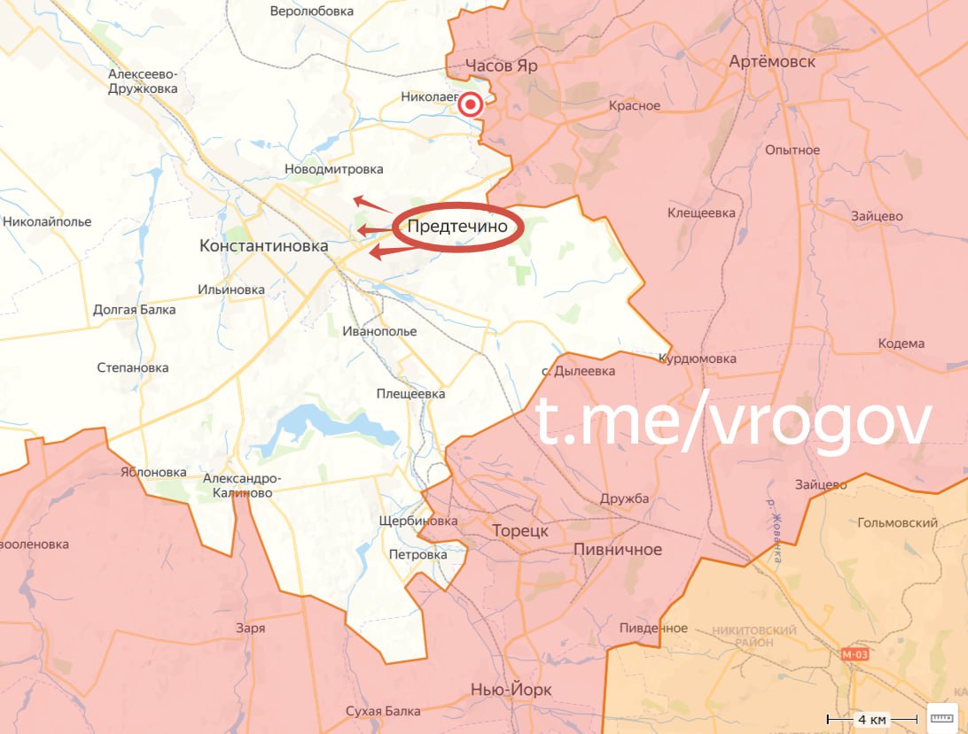 С освобождением Предтечино наши воины подошли вплотную к Константиновке — городу, превращённому ЗеРейхом в крепость и играющему важную роль в обеспечении логистики ВСУ.