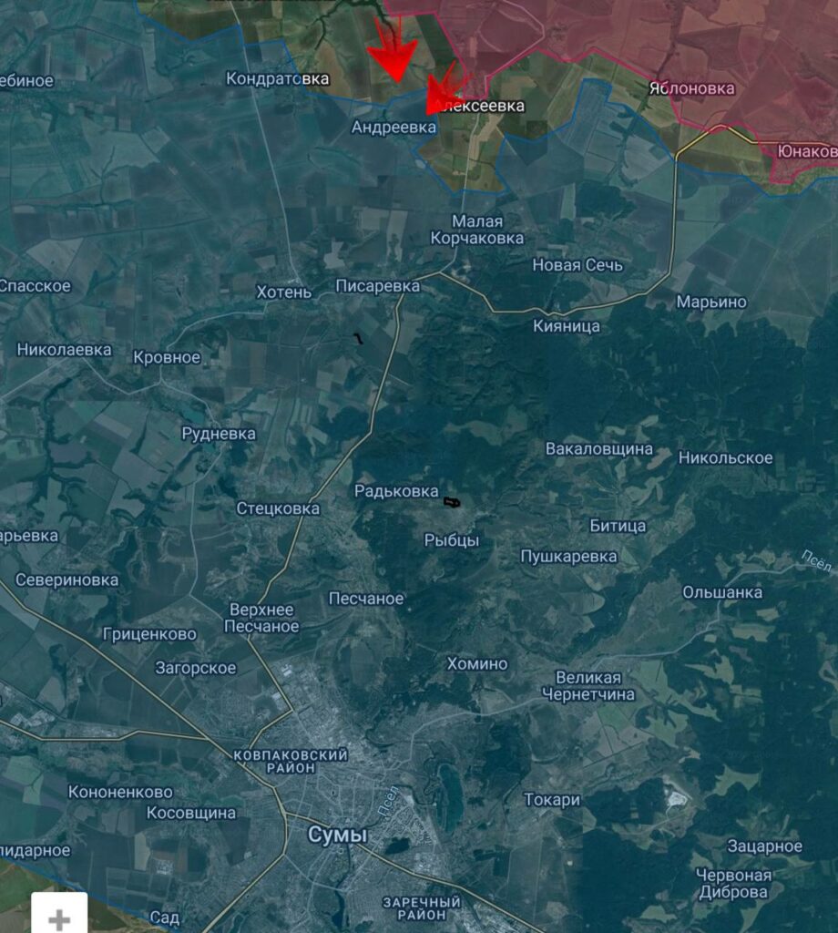 Противник оттянул группы из северной части Андреевки, куда ранее ВСУ стягивали войска для удержания рубежей, так как за Андреевкой важный логистический маршрут: от Писаревки до Сум, а также на восток и запад.