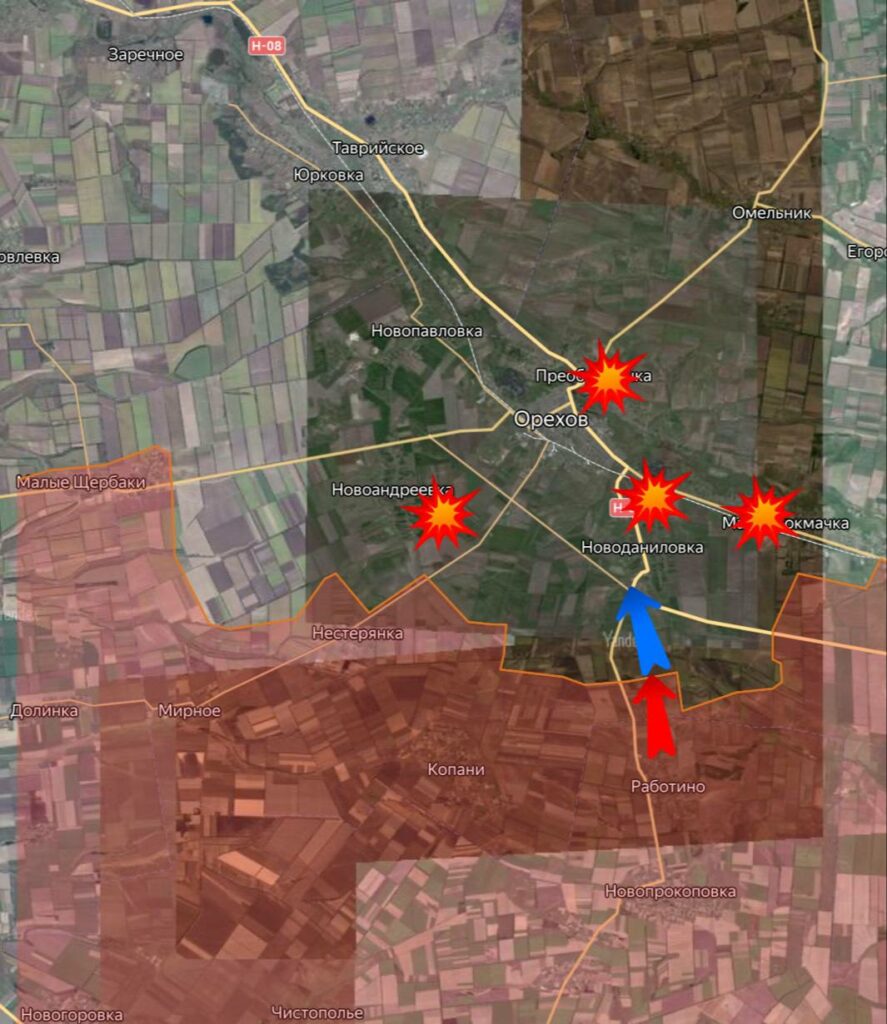 На Ореховском направлении, в районе Новоданиловки и в окрестностях Малой Токмачки, линия боевого соприкосновения остаётся без существенных изменений. Продолжаются позиционные бои.