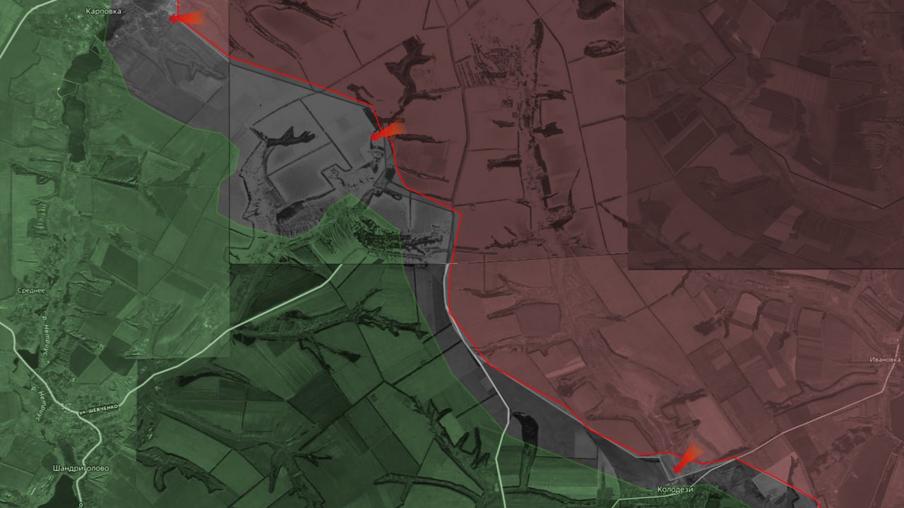 Развернулись ожесточённые бои за населённый пункт Карповка. Российские войска предпринимают активные попытки вытеснить украинские подразделения с занимаемых позиций.