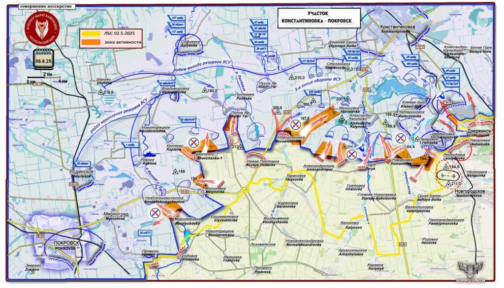 На Покровском направлении ожесточённые бои западнее Богдановки, в районе Орехово и западнее Котляровки. В результате контратак противник занял часть позиций в Миролюбовке, но в течение суток ВС РФ вернули большую их часть. Со стороны Малиновки ВС РФ штурмуют Мирное, а севернее – продвигаются к Коптево, формируя полуохват Новоэкономического с севера.