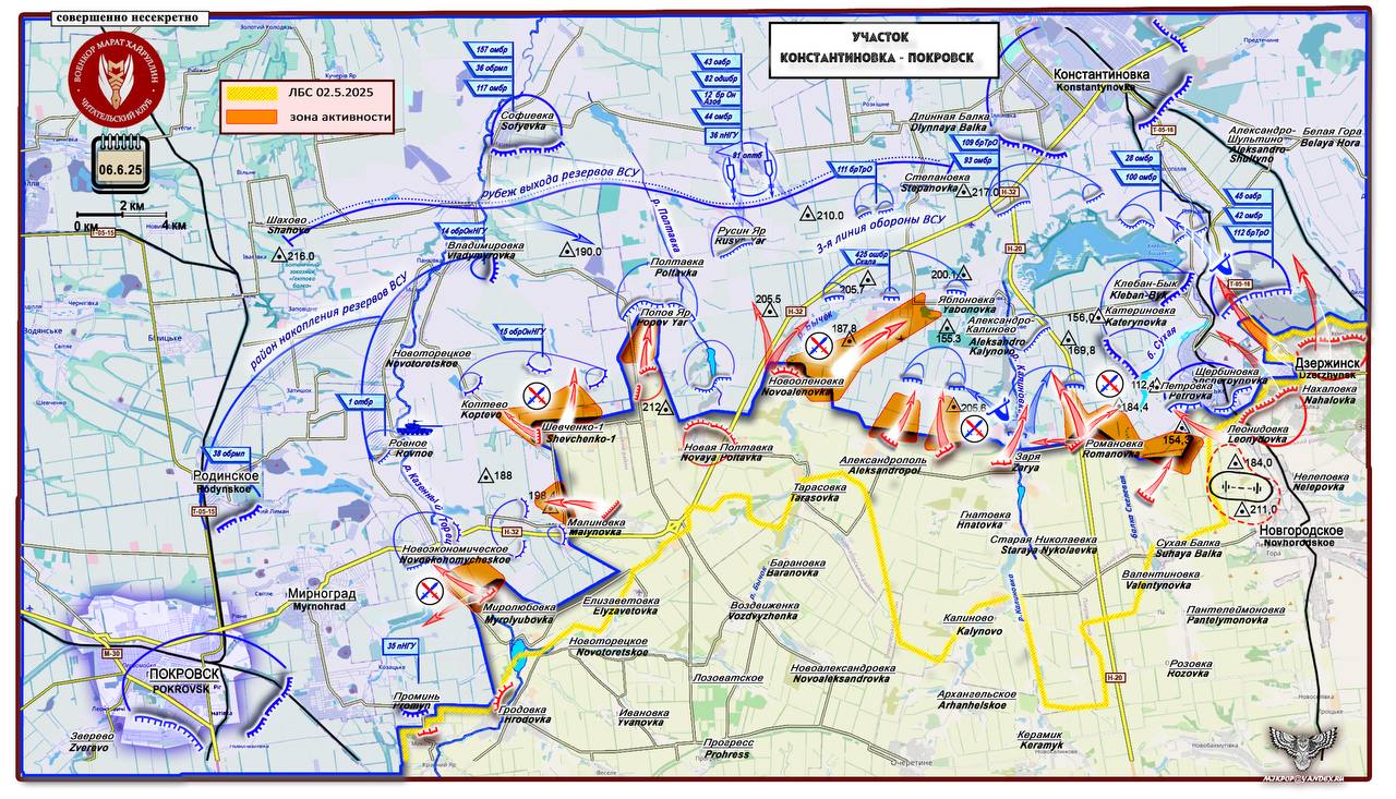 На Часовярском участке упорные бои в черте города без изменения общей ситуации. В городской застройке ещё продвинулись наши бойцы. Также есть успехи севернее города, и с юга продолжаем охват позиций ВСУ. Очень сильно помогают наши операторы БПЛА штурмовикам, которые давят в самом Часов Яре, и помогают штурмовым подразделениям, приближающимся к Константиновке. Беря под огневой контроль дорогу от Константиновки на Дружковку, единственный путь снабжения, мы очень сильно ослабляем и там гарнизон ВСУ, — Павел Кукушкин.