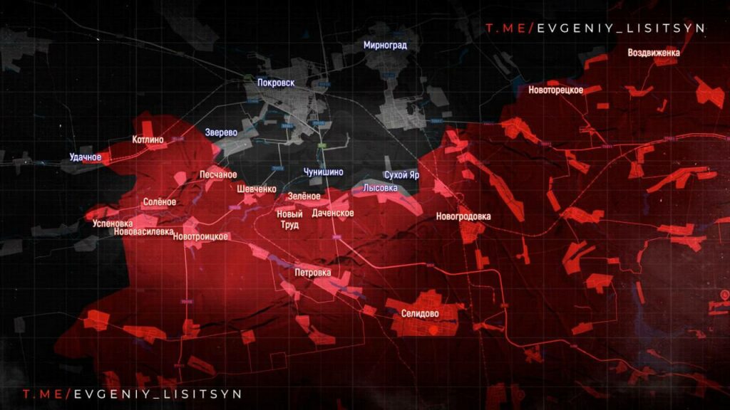 Покровское направление: Российские войска продвигаются у Котляровки и Богдановки. ВСУ вернули контроль над Успеновкой, где идут тяжёлые бои. В Солёном отбита атака ВСУ, но в Удачном противник слегка потеснил российские силы. Бои идут у Котлино, Зверево и Леонтовичей. У Шевченко сражение продолжается на северо-восточной окраине. ВСУ контратакуют у Зелёного, Даченского, Лысовки и Сухого Яра. Российская авиация и артиллерия поддерживают наступление на Миролюбовку, где идут бои в центре села. Прорыв через дамбу может открыть путь к Проминю и Московскому, угрожая Славянско-Краматорской группировке ВСУ.