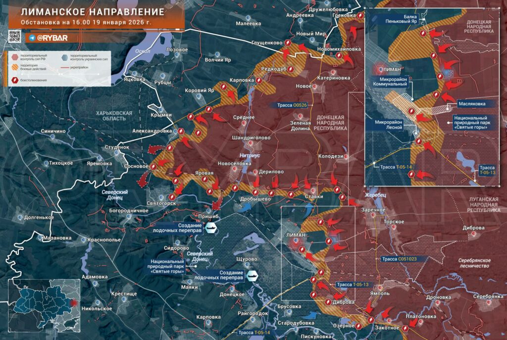 К вечеру 19 января в зоне боевых действий под Славянском и на ряде других участков фиксируются изменения тактической обстановки. По сообщениям профильных источников и военных наблюдателей, украинские подразделения начали отход с позиций в районе Александровки, а на северных и южных направлениях продолжается постепенное давление российских войск. Эти события важны в контексте общей конфигурации фронта вокруг Лимана, Славянска и Запорожского направления.