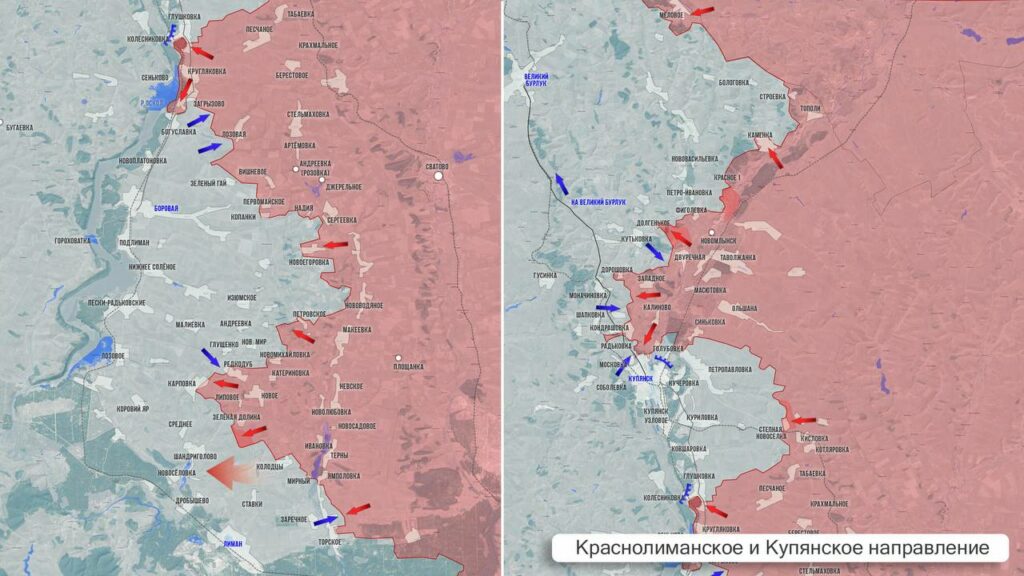 На Купянском фронте ожесточённые бои в районе Московки, Соболевки и Радьковки. С мест сообщают, что в последние дни усилились бои в районе Боровой.