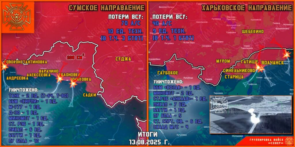 На Харьковском направлении есть тактические успехи в южной части Волчанска. Упорные бои в направлении на Синельниково. Продолжаются тяжелые бои в лесу западнее Синельниково. Командование ВСУ бросает в бой подразделения «Шквал», состоящие из бывших заключенных. Воины Севера продвигаются вглубь леса, отражая контратаки противника.