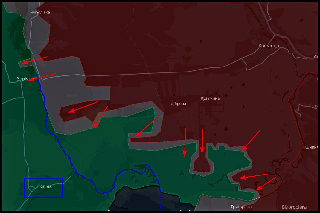 За три дня российские силы, включая 1234-й мотострелковый полк, заняли более четырёх квадратных километров леса. Теперь ВСУ, скорее всего, отойдут к Ямполю и будут пытаться держать оборону вдоль реки Черный Жеребец, чтобы остановить продвижение противника.