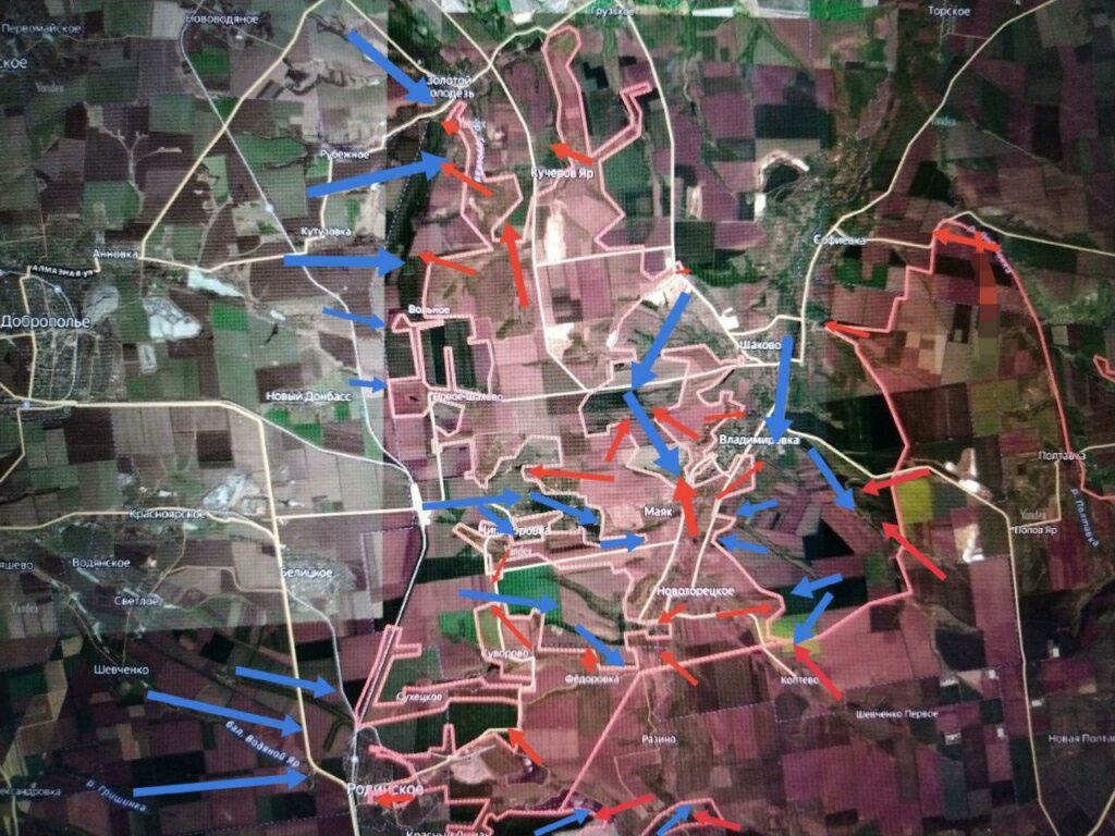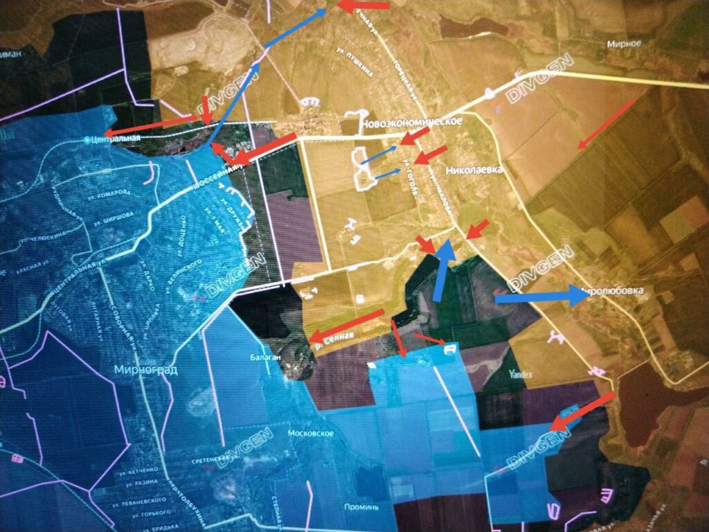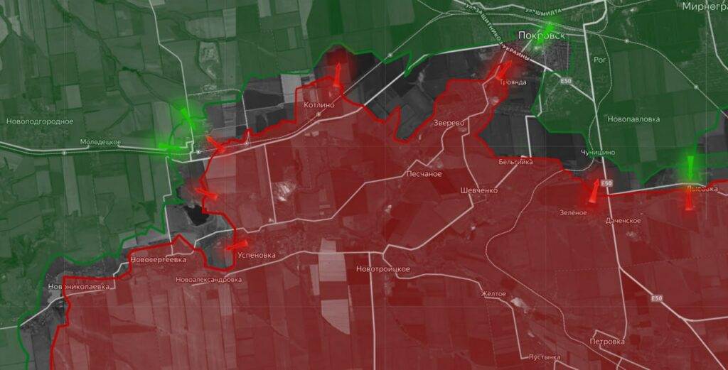 На западном охвате агломерации — встречные бои в районе северной окраины Удачного. Обстановка в районе Покровско-Мирноградской (Красноармейско-Димитровской) агломерации остаётся сложной и напряжённой для обеих сторон.
