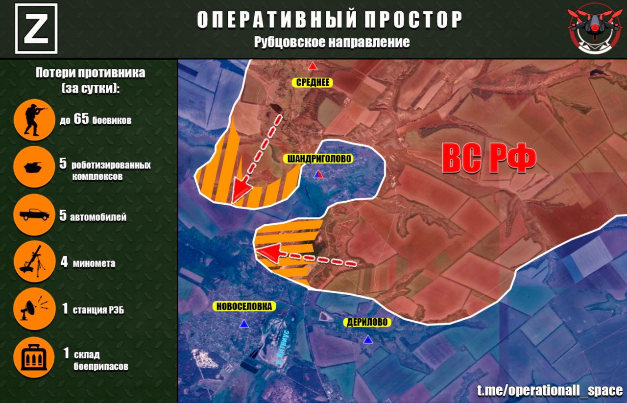 Северо-восточнее города, в районе Голубовки, российские силы продвинулись и заняли новые позиции. Населённый пункт постепенно превращается в плацдарм для охвата Купянска и давления на украинские коммуникации.