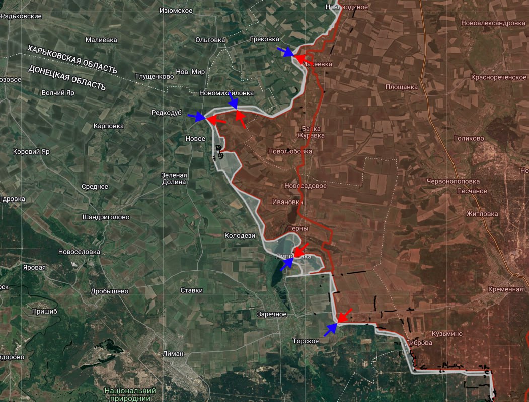 На Краснолиманском участке противник признаёт успехи ВС РФ в Новом. Сообщают, что наши штурмовики вышли к окраинам Редкодуба. Идут бои в районе Колодези и Торского.