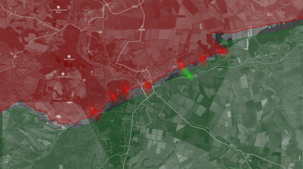 На Харьковском направлении ВС РФ продвинулись в южной части Волчанска. В районе Синельниково и Тихого наши выбили противника с ряда позиций. На Хатненском участке фронта Северяне расширили зону безопасности возле российской границы. В Волчанске и окрестностях также есть продвижения. Противник активных действий не предпринимал. В Волчанске на левом берегу реки Волчья штурмовые подразделения Северян заняли и зачистили 14 зданий, закрепились. За сутки продвижение составило 150 м. В районе Тихого Бесстрашные расширили зону контроля, продвинувшись на 200 м.