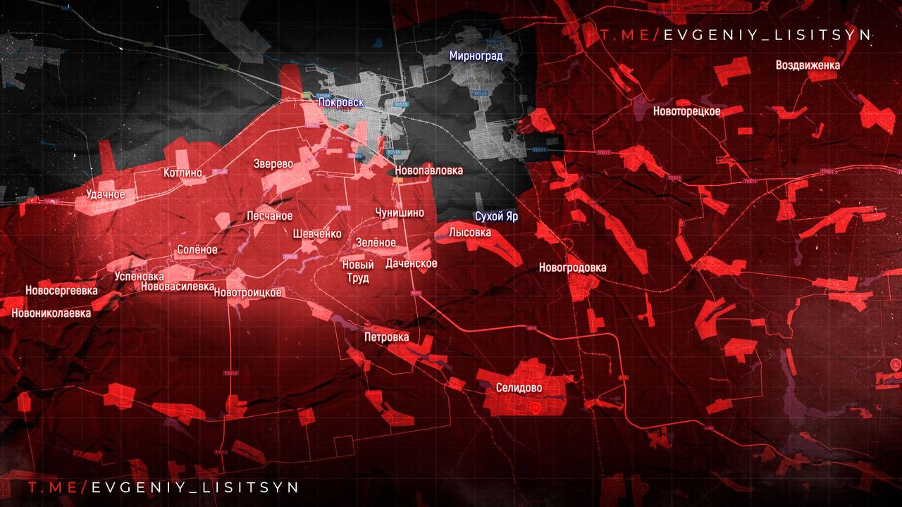 На Покровском направлении практически вся промзона в западной части Покровска под контролем ВС РФ. Наши улучшили позиции в районе вокзала. Сообщают, что спецназ ГУР направлен для деблокирования украинского гарнизона в Покровске и для удержания позиций в Мирнограде. В этом городе идут бои в южной части в районе террикона шахты им. Димитрова. В северной части наши бойцы штурмуют улицы Первого Мая и Восточную. Севернее ВСУ отправили бронеколонну для контратаки Родинского, но она завязла в минных полях и была уничтожена. В район Шахово и Владимировки враг стягивает дополнительные резервы. На западном фланге Добропольского выступа наши бойцы улучшили положение севернее Никаноровки и взяв ряд позиций в районе Дорожного. 90% солдат ВСУ сбежали из красноармейского микрорайона Троянда, несмотря на сеть мощных опорных пунктов в данном районе. Об этом сообщил ТАСС военный эксперт Киселев.