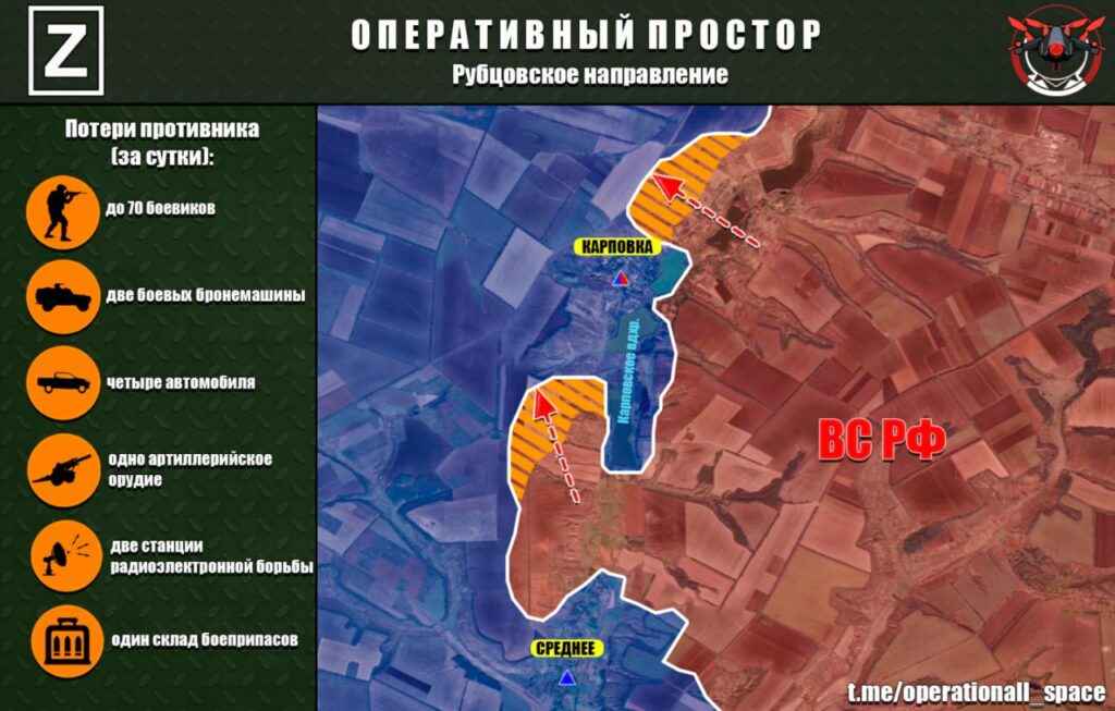 ВС РФ продолжают улучшать тактическое положение, расширяя плацдарм на западном берегу Карповского водохранилища.