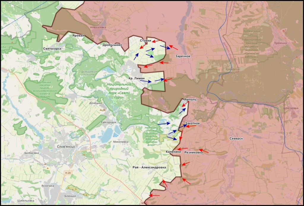 В районе Ямполя и южнее фиксируются встречные бои. Обе стороны пытаются продвигаться вдоль русла Северского Донца. Устойчивого контроля нет. Аналогичная ситуация в зоне Старый Караван — Брусовка — Царицыно: стычки, переменное присутствие сторон, серая зона.