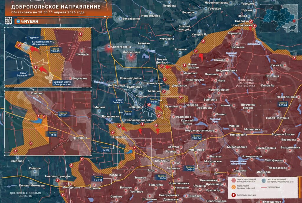 Карта боевых действий на 13 апреля показывает: бои за Константиновку затягиваются, а ВСУ несут серьезные потери еще на подступах к городу. Украинские подразделения все чаще вынуждены передвигаться пешком из Дружковки и попадают под удары дронов. На этом фоне российские войска постепенно углубляются в застройку, но быстрых прорывов нет.