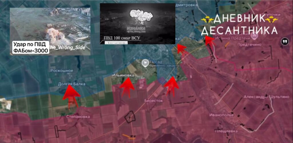 Севернее Степановки ВС РФ продвинулись к Долгой Балке. В Ильиновке также идут бои, в центральной части села наши войска взяли под контроль ряд ключевых позиций, остальная часть села в серой зоне, такая же ситуация и восточнее Ильиновки, где территория до Свято-Сретенского храма тоже в серой зоне.