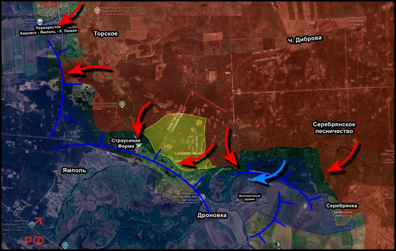 Боевые действия продолжаются вдоль грунтовой дороги Дроновка — Ямполь. Очаги сопротивления фиксируются в Ямпольском лесничестве и на территории бывшей страусиной фермы, которые пока остаются вне полного контроля российских подразделений. На брошенных позициях противника ведутся зачистки и инженерные работы.