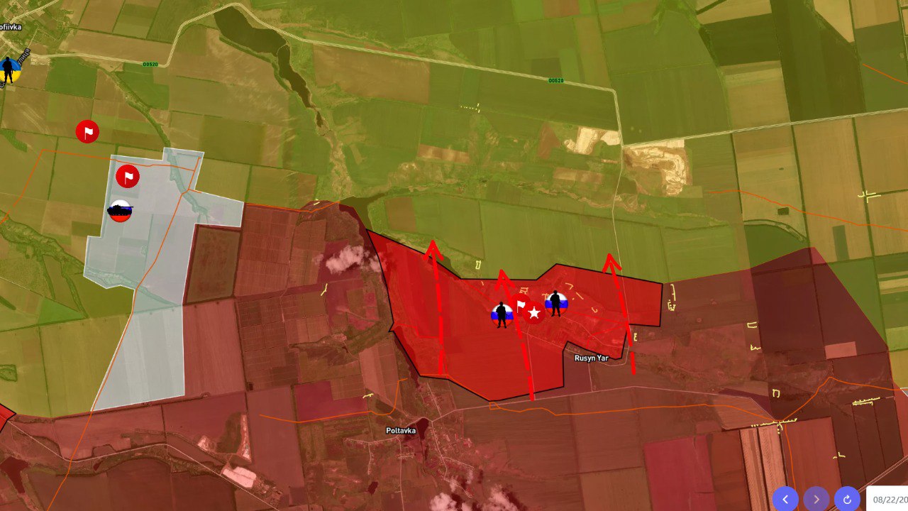 ВС РФ 23 августа сжимают кольцо вокруг Константиновки, выбивая ВСУ из Катериновки и Русин Яра, и давят с трёх направлений, перерезая логистику противника. На Покровском фронте российские войска прорвали оборону в Шахово, угрожая окружением Покровска, пока ВСУ несут тяжёлые потери и теряют позиции.