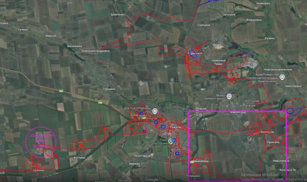 Бои также идут в районе шахтоуправления Покровска и обогатительной фабрики, где российские силы закрепились на новых позициях и отрезают пути снабжения противника.