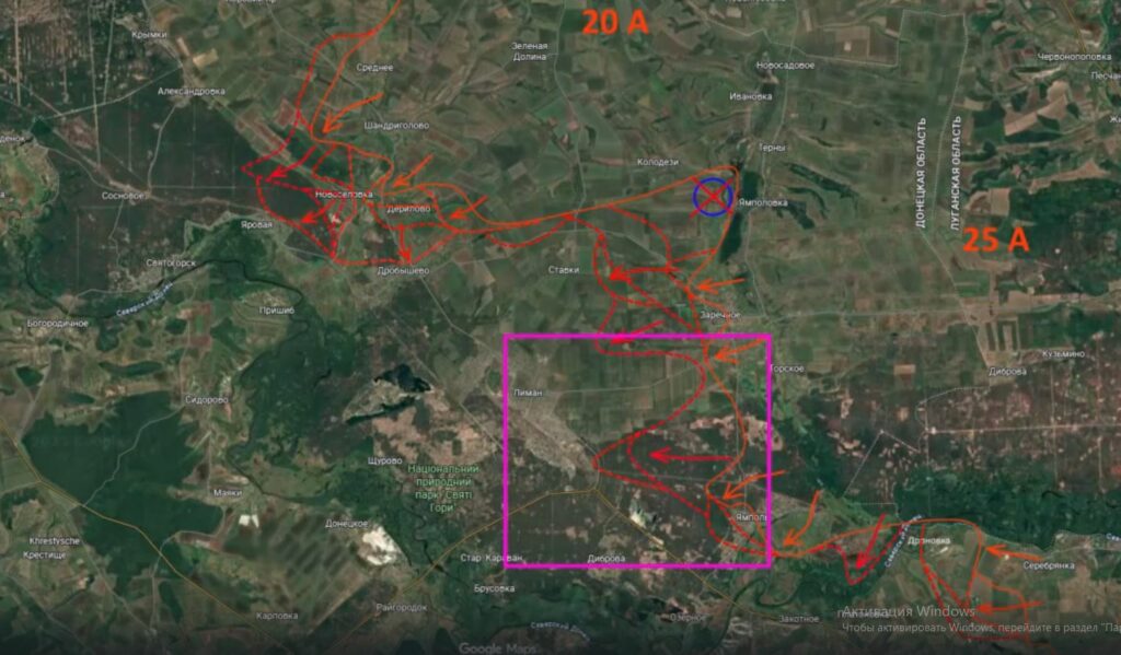 На Лиманском участке российские силы развивают наступление — разведгруппы уже действуют на юго-восточных окраинах Лимана, ведутся ожесточённые бои за Ямполь.